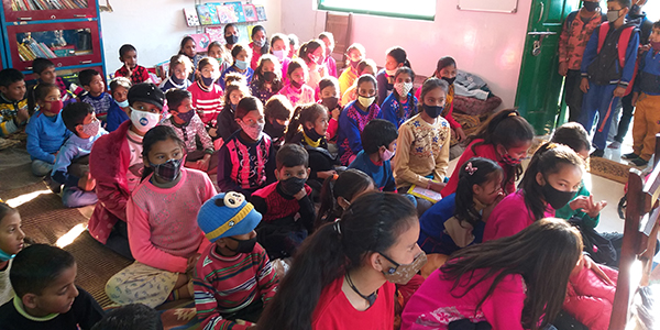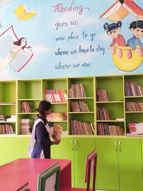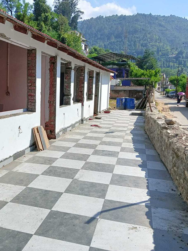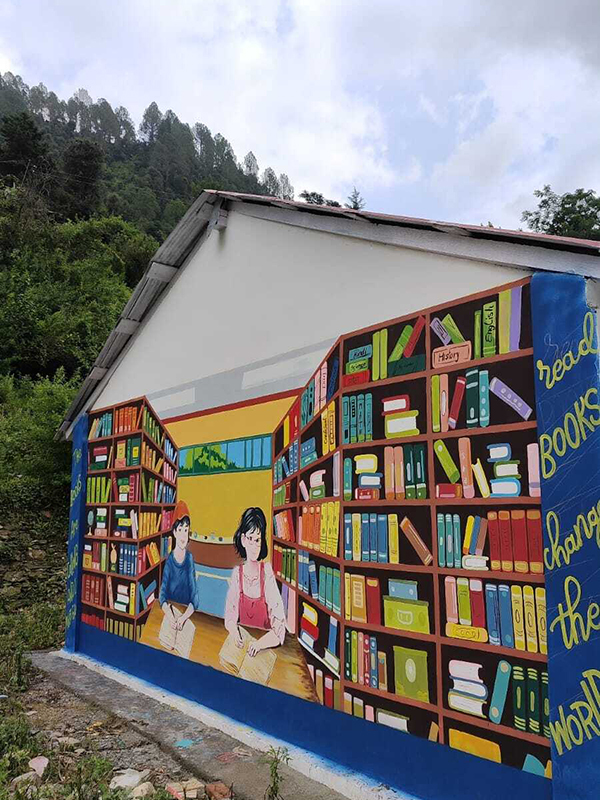 Giving Hands Foundation helped in the process of building a library in a remote tranquil village Talla Ramgarh, Nainital District, India. The local team led by the dynamic Education Officer Ms. Geetika Joshi zeroed down on a dilapidated building surrounded and overrun by weeds due to long standing decades of negligence. It had become a safe haven for alcoholics and addicts in the past. Efforts were started to reconstruct it into a functioning library to help the kids of the surrounding neighborhood. The goal in mind was to
